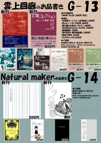 こんにちは、雲上回廊の秋山真琴です。 9月14日(日)堺市産業振興センターにて開催される文学系即売会文学フリマ大阪に出展します。ブース番号はG-13、サークル名は雲上回廊です。 開催まで残すところ2日ほど! 頒布内容がほぼほぼ確定したので、改めてお知…